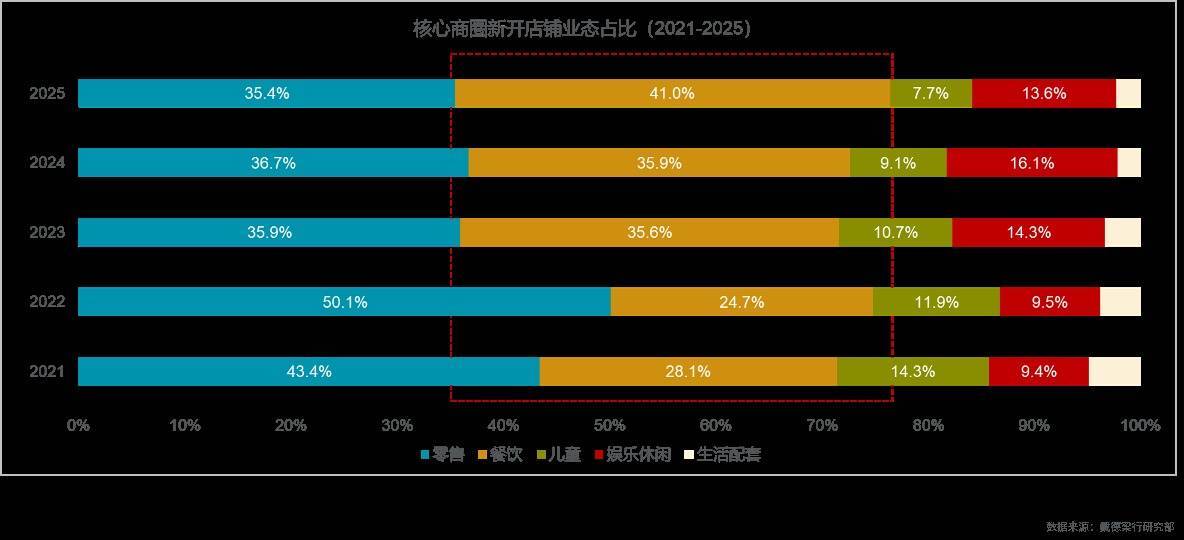 餐饮业态成为拓展主力,占全年新店数量的41%。其中,特色正餐仍占主导,占比从2021年的73.2%下降至44.9%,小吃、甜点饮品及休闲快餐占比快速提升。随着悦己消费、单身经济与银发经济的兴起,消费者对饮食的追求愈发多元化,饮食场景不再局限于社交属性的正餐,小吃、甜点饮品等更能满足即时情绪慰藉的“轻消费”需求持续增多。与此同时,特色正餐市场需求也在呈现追求新鲜感、高效便捷与高性价比的发展特点,如创新就餐体验的寿司郎、适配单身人群的自助小火锅、坚持现炒拒绝预制菜的费大厨辣椒炒肉等,均在上述特点上满足消费者多元化的需求,成为近期火热的餐饮品牌。