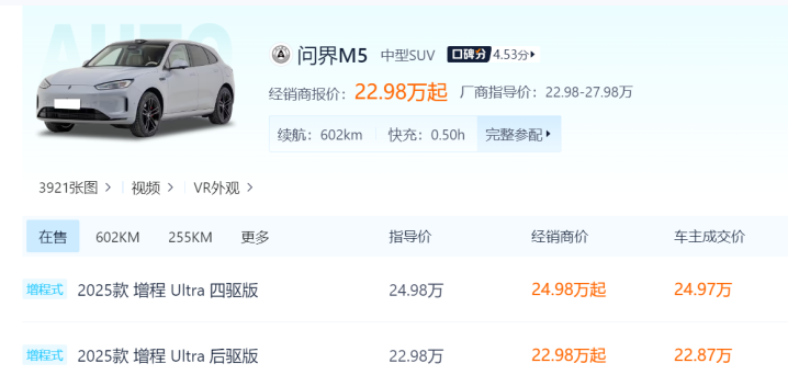 说真的,看完尚界H5的这一预售价格,此刻我满脑子里想的都是,尚界H5卖这么便宜,隔壁的问界M5还要不要卖了?难道就不怕自家车型“打架”?