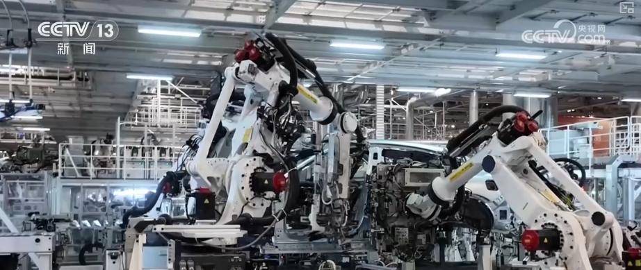 跟随导览车进到工厂内,整个工厂内看不见一名工人,只能看到自动化生产线正在高速运转,机械臂精准地完成焊接、涂装、组装等工序。AGV小车在工厂内快速穿梭,运送零件的同时也会自动避让导览车,保证安全。