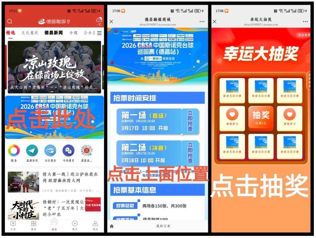 3月17日、18日上午十点,“德昌融媒”APP分别开放“开球赛”门票、“决赛”门票