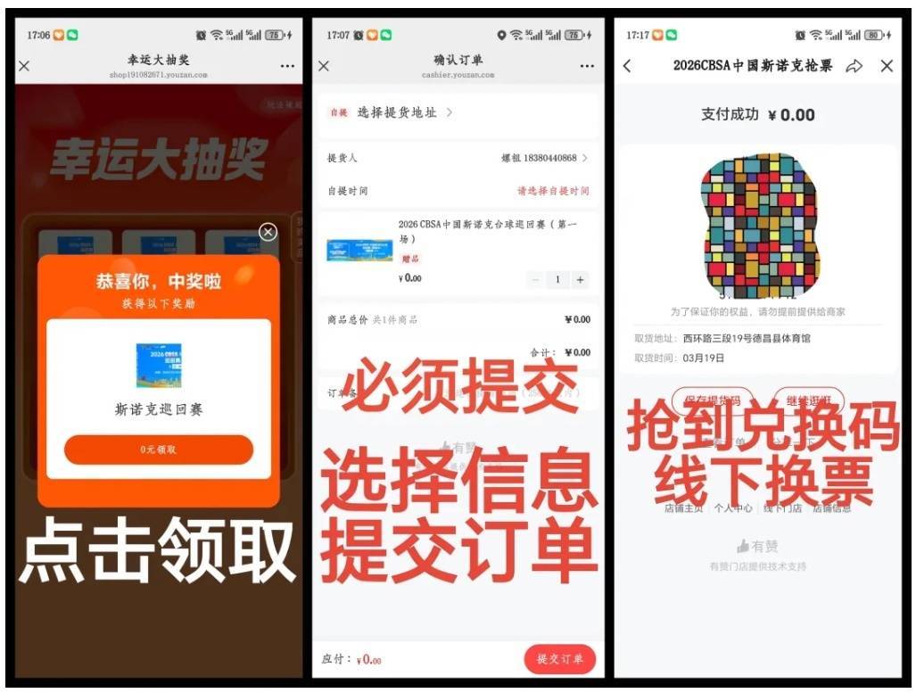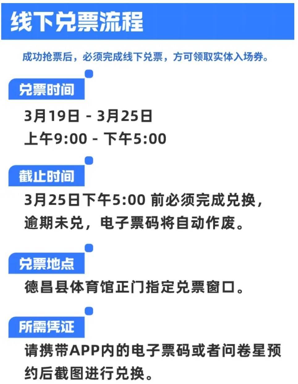 温馨提示:所有线上凭证均需到体育馆正门处换取纸质票