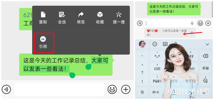 比如在讨论工作方案的时候,同事发了一大段方案内容,你想针对其中某一点提出意见,就可以直接引用那部分文字,然后发表看法,对方一下子就能明白你的意思,避免了很多误解 。