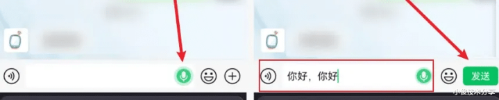 现在完全不需要这样操作了,咱们只要点击输入框,接着后面会出现一个小话筒,只要点击这个小话筒,图标就会从白色变成绿色,这时候你对着手机说话,它就能自动把语音转换成文字。