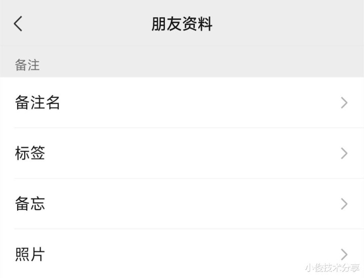原本的“备注”板块更名为“备注名”,下方的“描述”选项分为“备忘”和“照片” 。